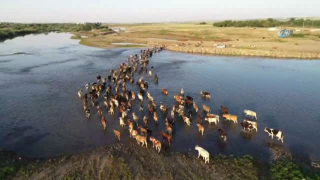 Hayvanları Sıcağın Etkisinden Korumak İçin Nehirden Geçiriyorlar