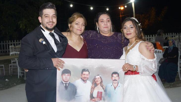 Tabloda kendi nikah fotoğrafları ile babalarının fotoğrafını gören çift ağlamamak için kendilerini zor tuttu. Damat Murat Yeşil babası Murat Mustafa Yeşil’i 2001 yılında, gelin Çisem Yeşil ise babası Ahmet Dağcan’ı 2017 yılında kaybetti.